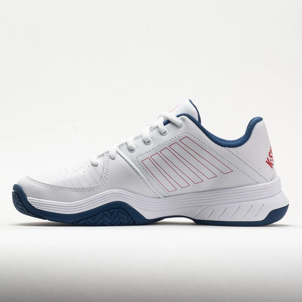 Own the match in the K-Swiss Court Express! Built on the best-selling Express platform, these lightweight tennis shoes are an ideal starting point for new players. A supportive leather upper wraps the foot for durability on the court. Stay energized after every set under the K-EVA midsole. Get a grip on hard surfaces with the Aosta® II rubber outsole. When you want the best blend of comfort and support, choose the K-Swiss Court Express!